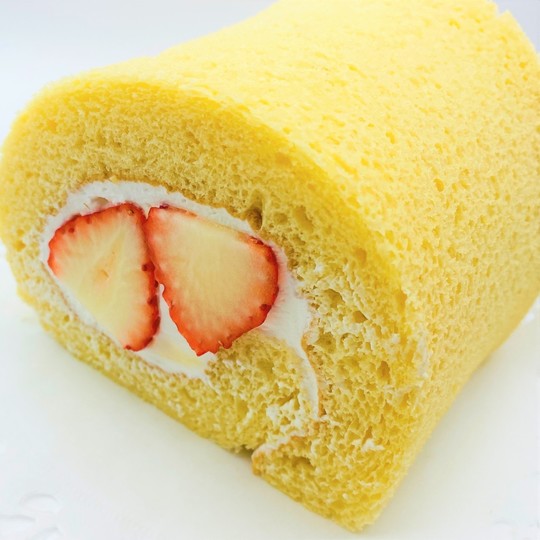 ふわふわロールケーキの中にイチゴを包んだ贅沢なロールケーキです。